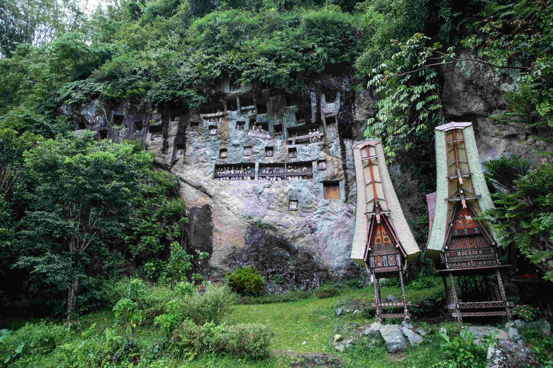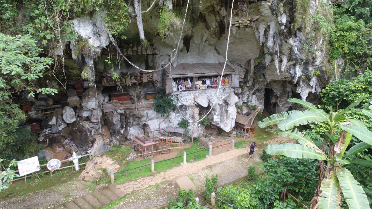 This high cliff with green grassland at the front is burial site for noble family of the Toraja tribe. Entering the Londa area, visitors would be greeted by ‘tedong saleko’, albino carabao with dark spots with prices that can reach billions of rupiah. ‘Tedong’ or carabao, is sacred animal for Toraja people who are believed would deliver them to the afterlife or ‘puya’. While ‘tedong saleko’ is the highest class carabao for the Toraja people.