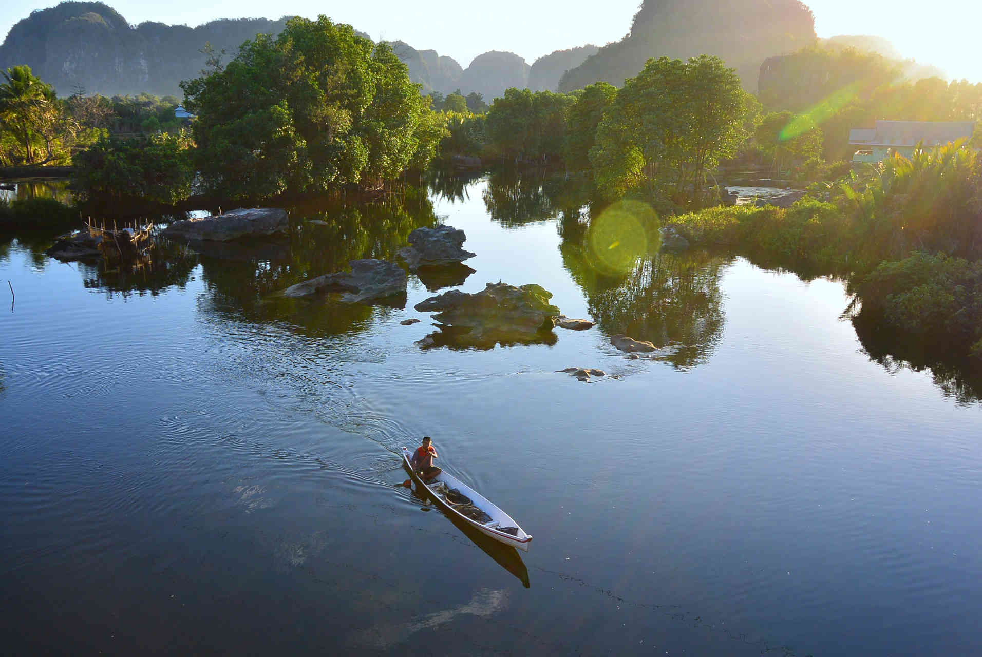 The main attraction of Lake Tempe is the presence of a mountain range that stretches majestically on the background of this vast lake.